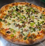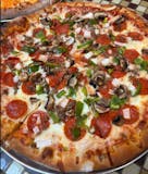 A bold and flavorful favorite topped with savory sausage, spicy pepperoni, mushrooms, onions, and green peppers — all on our signature golden crust with melted mozzarella. Classic, loaded, and unforgettable.